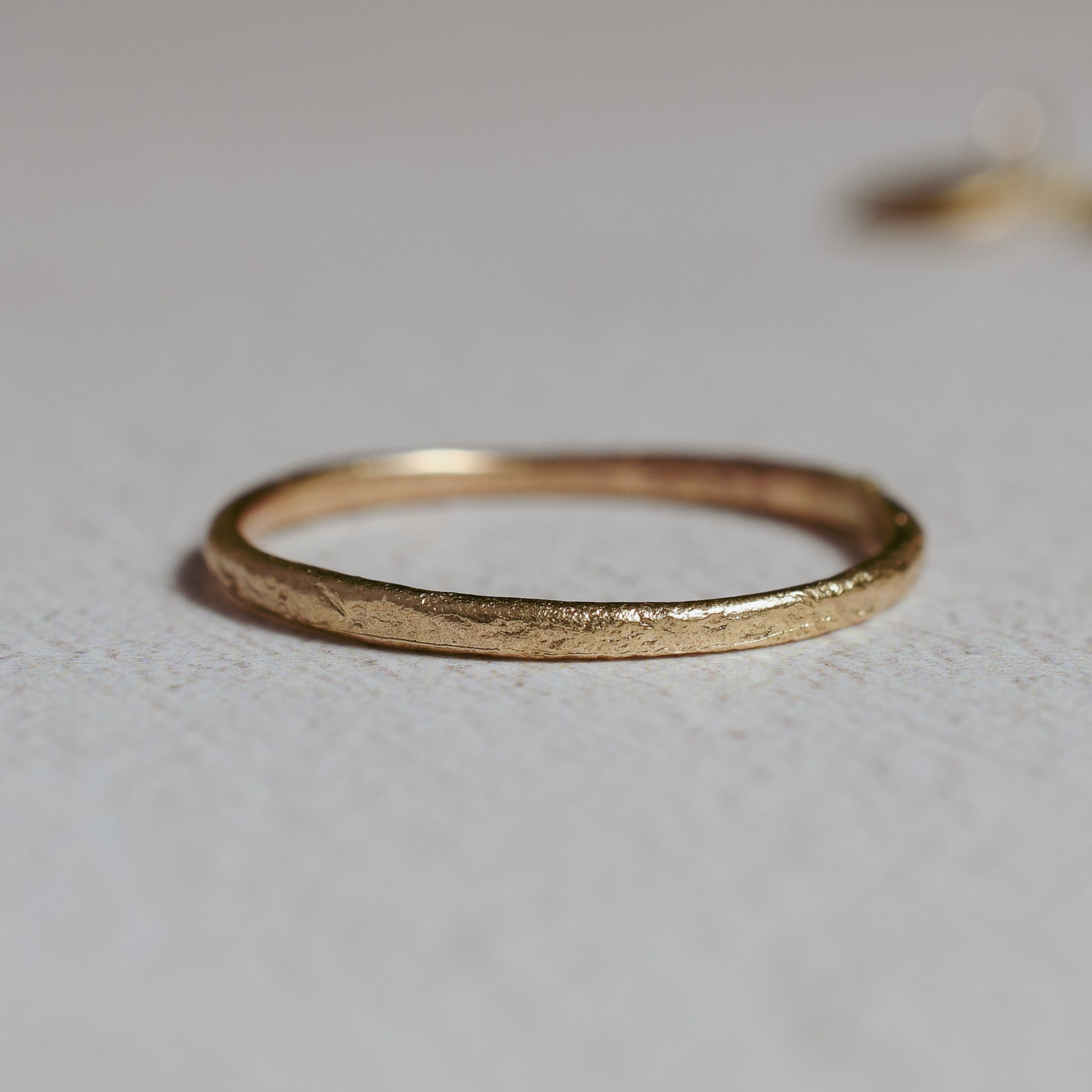 A sweet circle of gold for the finger that glows like a quiet ember, minimal and understated but with all the beautiful, evocative texture of an ancient artefact. Light and effortless to feel like a second skin, this would also make a great choice for a subtle wedding band, a placeholder engagement ring, or a meaningful promise ring.